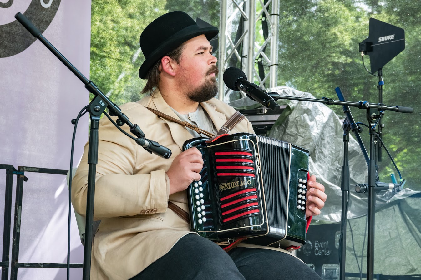 Toompeal Komandandi aias avatud laval võlusid külastajaid Orissaare ja Valjala Kannelnäpud, Saaremaa Simmanitantsuklubi ja karmoškaansambel Meite Moodi, Aasta küla pillimees 2023 Tõnu Eermann, Taritu meesansambel ja Simmu Mats lõõtsa ning lauluga. Esivanematelt päritud rahvarõivastes ja pillidega esitatud lauludele ja tantsudele järgnes jazz, millega paitasid meeli Pille-Rite Rei ja Kusti Lemba.