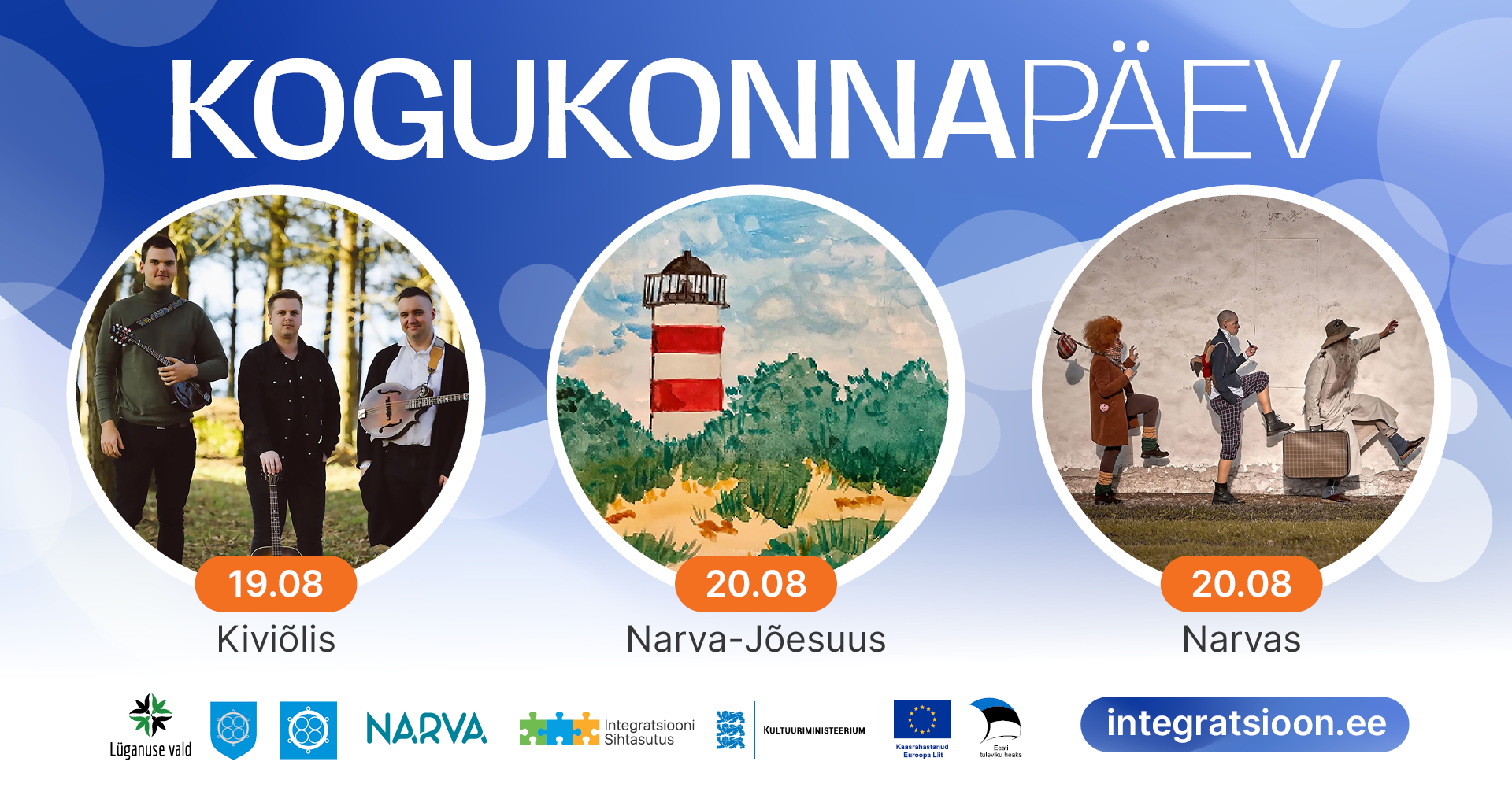 Integratsiooni Sihtasutus kutsub kogukonnapäevadele, millega tähistame kolmes Ida-Virumaa linnas Eesti taasiseseisvumist. 19. augustil peame pidupäeva Kiviõlis ning 20. augustil Narvas ja Narva-Jõesuus.