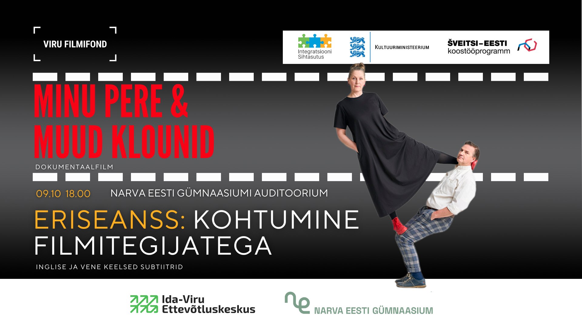 8.–9. oktoober – dokumentaal „Minu pere ja muud klounid“ (2025). Lugu näitlejapaarist Haide ja Toomas, kelle klounitegelased Piip ja Tuut on armastatud üle Eesti, kuid kelle pereelu on kui tasakaalu otsimine žongleerides töö ja kodu vahel. Subtiitrid inglise ja vene keeles. Piletid saadaval siin (Viru Filmifondi eriseanss: dok.film "Minu pere ja muud klounid'' ja Viru Filmifondi eriseanss: dok.film "Minu pere ja muud klounid''). Filmid on varustatud vene ja inglise keele subtiitritega.