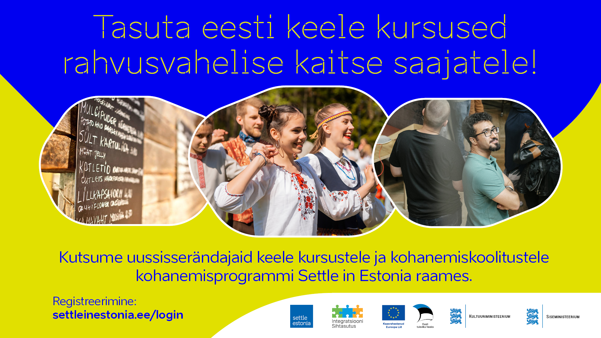 - Kohanemisprogrammi koolituste nägemiseks külastage veebilehte settleinestonia.ee/login. Iseteeninduse kasutamiseks on vaja luua konto ID-kaardi, Smart-ID või Mobiil-ID abil.
