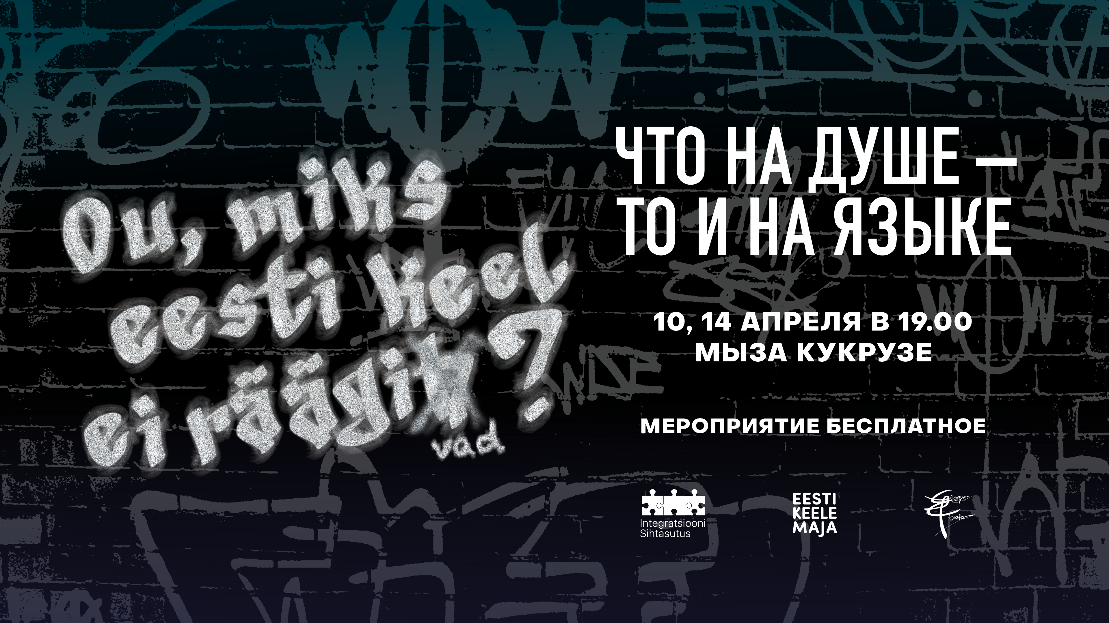 Бесплатные билеты можно приобрести: https://fienta.com/et/mis-keelel-see-meelel