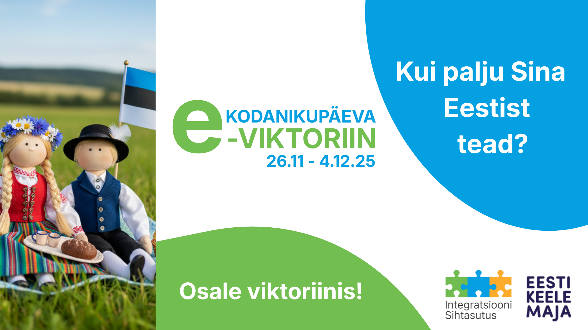 По случаю Дня гражданина, который отмечается 26 ноября, Фонд интеграции приглашает всех желающих проверить свои знания об Эстонии в тематической онлайн-викторине. Пройти викторину можно до 4 декабря. Викторина состоит из 30 вопросов.